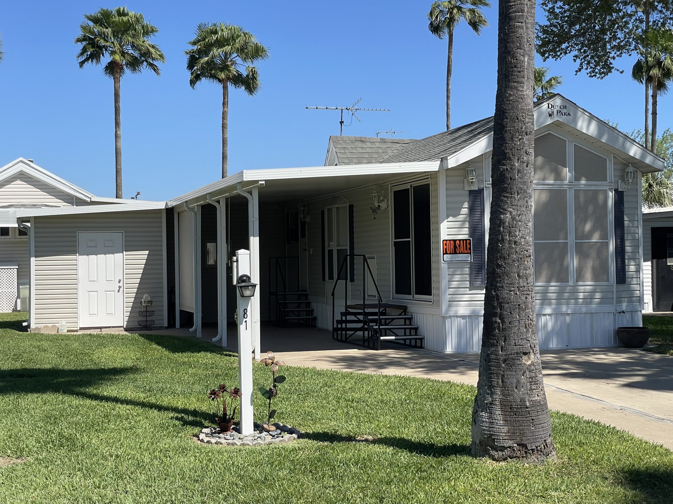 Great corner lot 19996 Park model with 1 Bedroom, 1 Bath remodeled with large walk-in shower, A/C unit with heat strip unit in stalled 2023, Washer and Dryer installed in 2025 Full size stove put in 2023, Covered patio with 3 individual outside solar shades that crank down, Mini refrigerator in shed, New roof and patio redone in 2024, Furnished, Sprinkler system with nicest lawn in the park